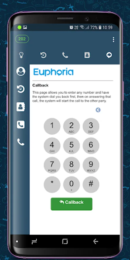 The Euphoria Phone is a mobile phone based Telephone extension for your Euphoria Cloud PBX. When you or your agents are on the road, the Euphoria Phone application allows you to make or receive calls.