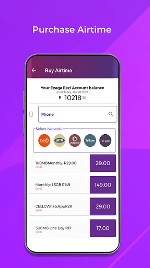 • Buy airtime, data, and SMS bundles.