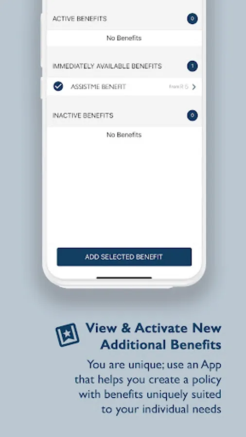 - View a list of Benefits that are available to you and your family members policies. See something that you would like added? Simply activate the Benefit right then and there