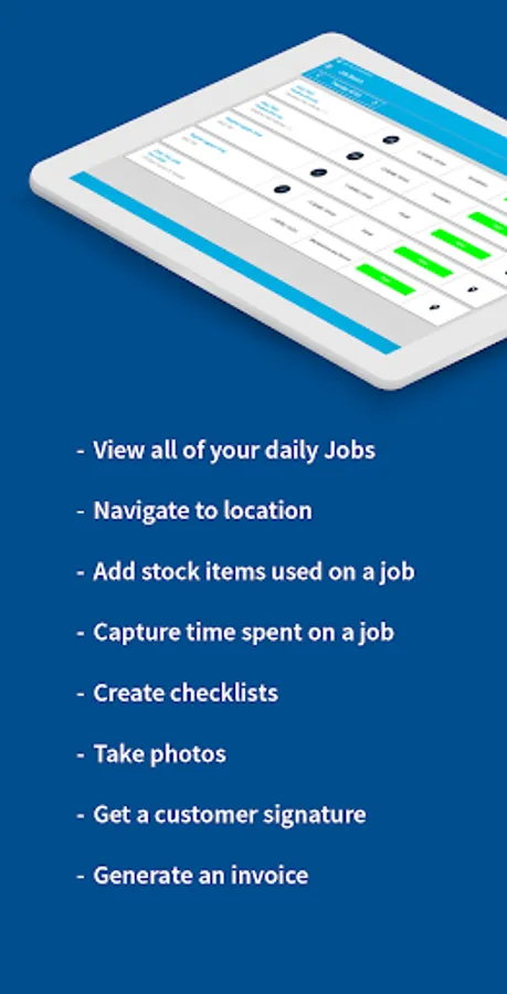 Our tablet app means that you no longer need to print your job cards or invoices.