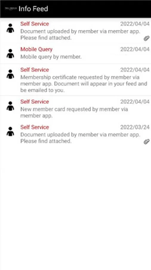 Information Feed: A list of all recent interactions between yourself or your membership and FMHC. Including records of interactions with contact centre agents, recent statements.