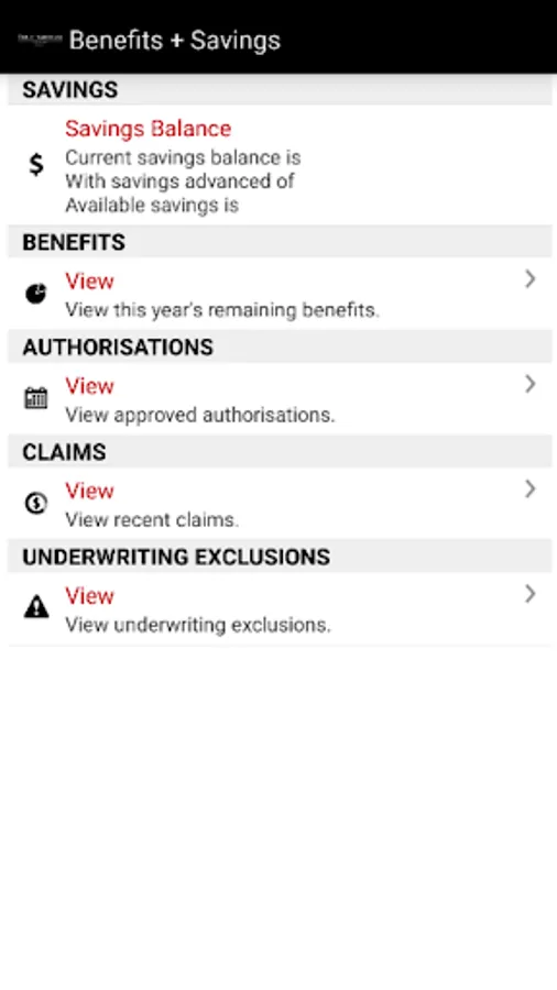Benefits & Savings: Easy to read information of benefit and savings balances and important information regarding access to the benefits.