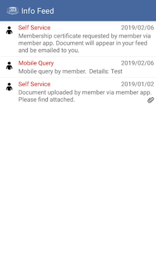 Information Feed: A list of all recent interactions between yourself or your membership and MASM. Including records of interactions with contact centre agents, recent statements.
