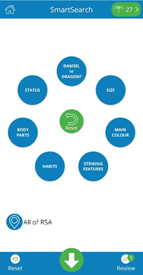 The SmartSearch function allows you to select your current, or any other location and the species at that location will be filtered. Over and above the GPS location, you can search by shape, type, colours, size, habits, striking features and more. There are 100's of attributes you can choose from, which makes identifying a species accurate and easy. As a first ever app achievement, the resulting species list is sorted by relevance with the most probable species matching your search criteria at the top, which makes it extremely quick and accurate. The ability to remove species from the results is a game-changer.