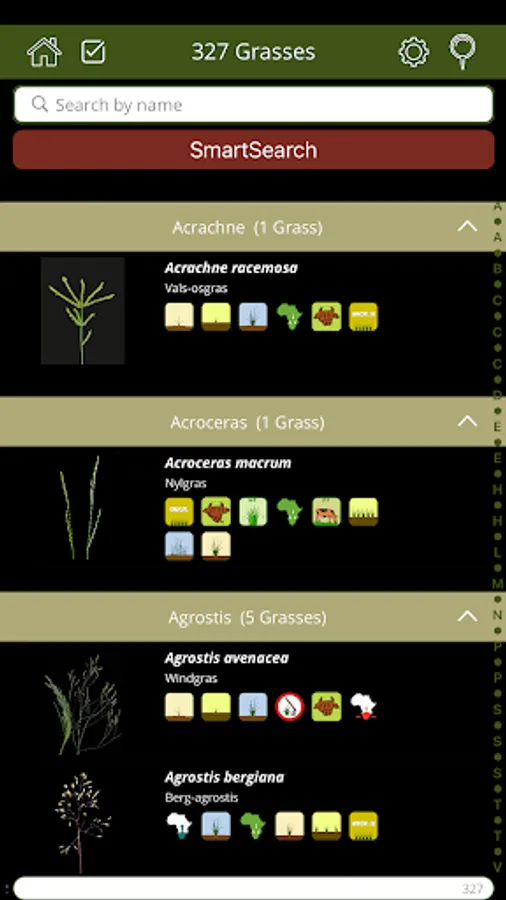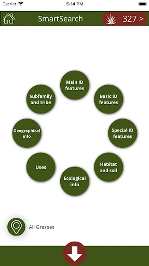 GrassPro offers the most accurate location filter available. You can select current location or a location from the map and species will be filtered using the location. Over and above the location, you can search by various other categories using the Smart Search function. There are many attributes you can choose from, which makes identifying a species accurate and easy. The resulting species list is sorted by relevance with the most probable grasses matching your search criteria at the top, which makes it extremely quick and accurate. The ability to remove species from the results is a game-changer.
