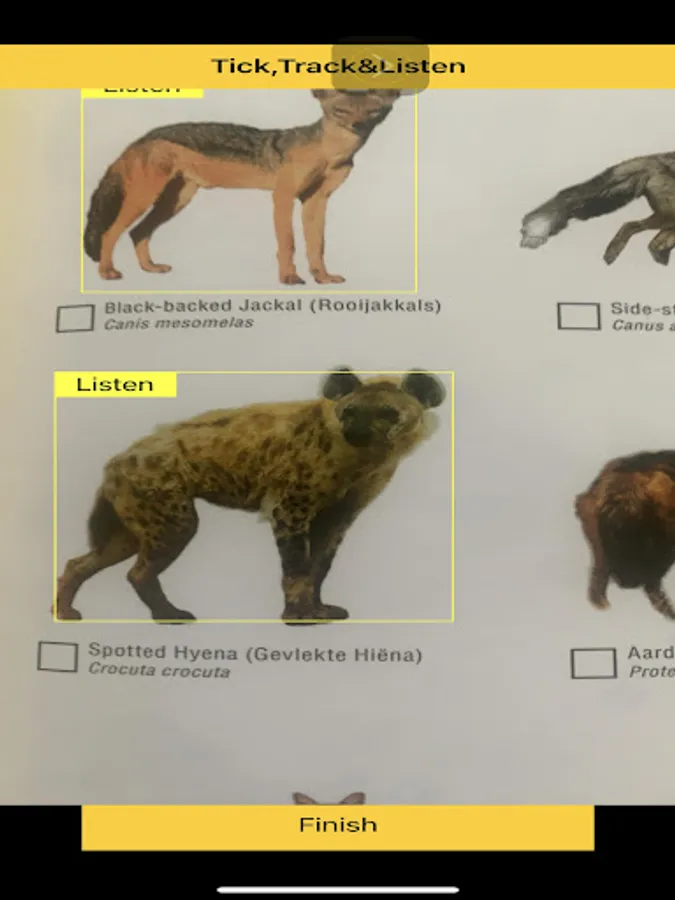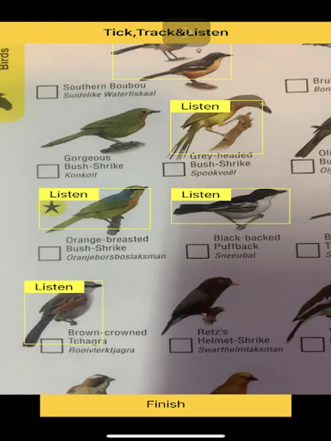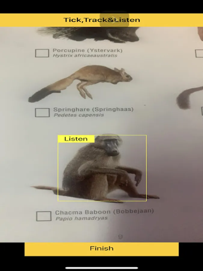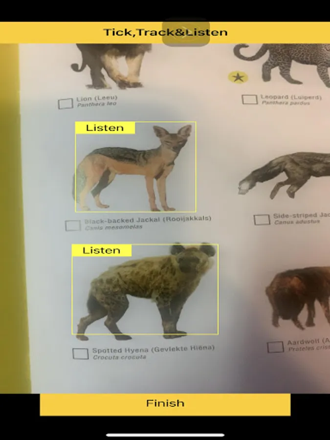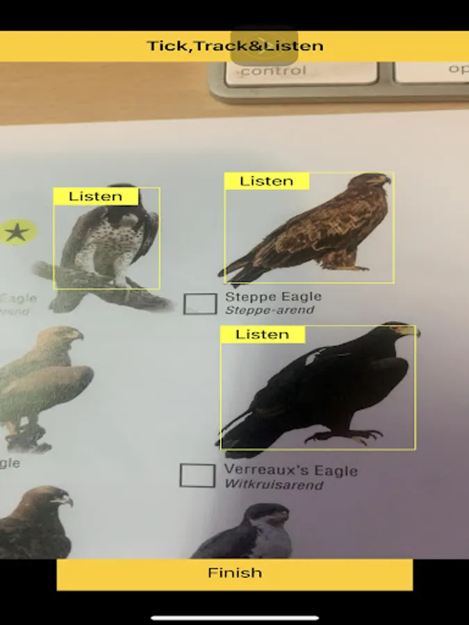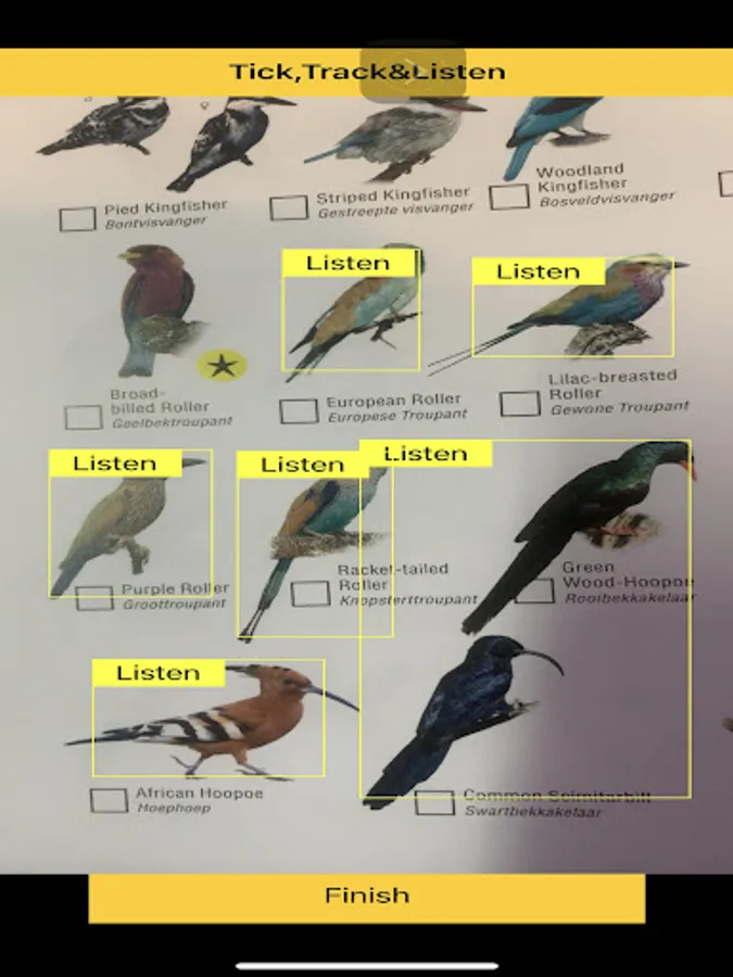 Listen to bird and animals sound with our app. Simply aim the app to the image of the bird or animals in the book, and listen to it call.