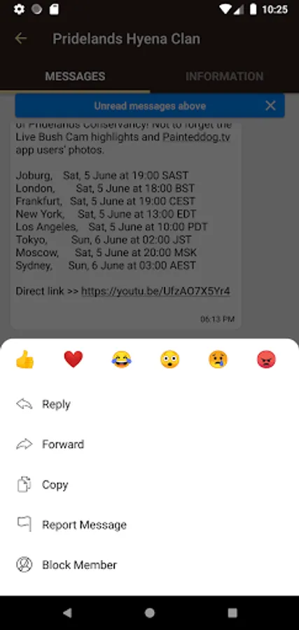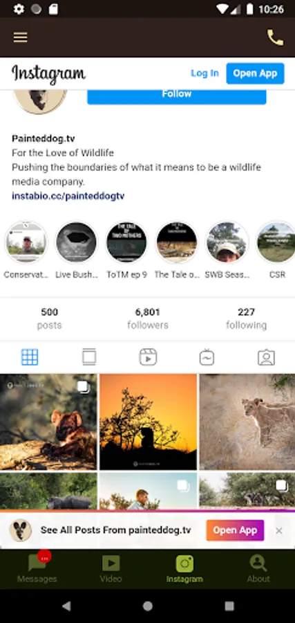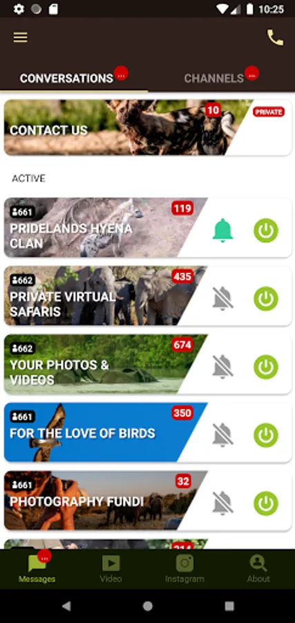 Private and secure messaging channels with the Painted Dog TV team and other members.