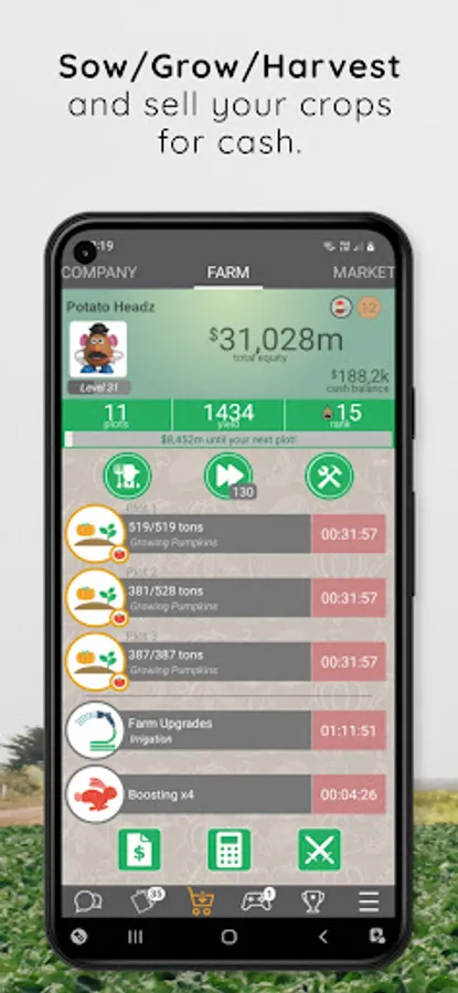 • Multiplayer strategy game offering farming manager powerup cards offering many boosters