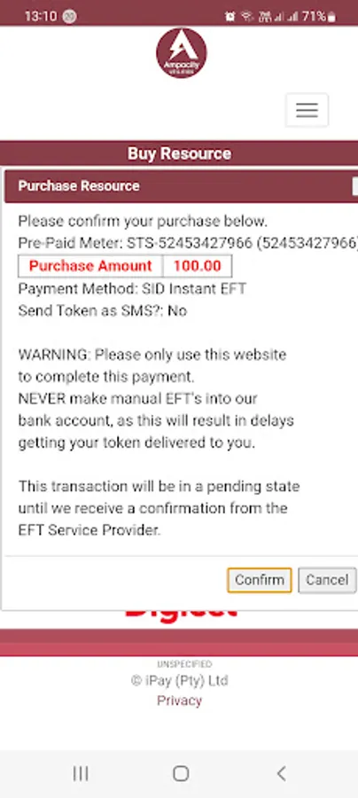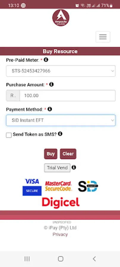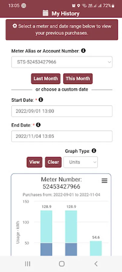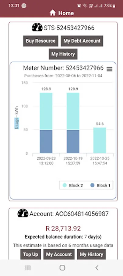 The prepaid purchases function allows users to buy tokens online as well pay for their resources from anywhere is the world. History of previous purchases is stored, giving the user insight into their purchasing patterns which is depicted on a graph.