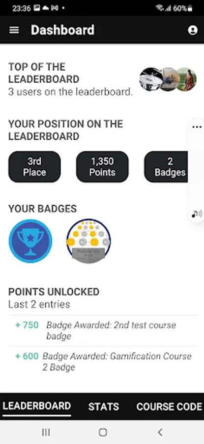 Gamification mechanisms that will allow learners to receive points, badges, trophies, ranking and level up after completing learning and required activities.