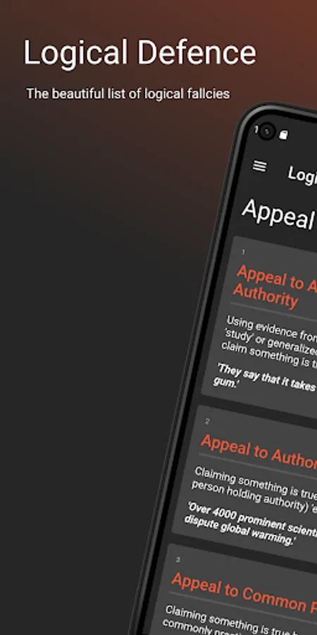 Ok, enough rambling. This is an app that displays a list of the logical fallacies that haunt every rationalists' mind.