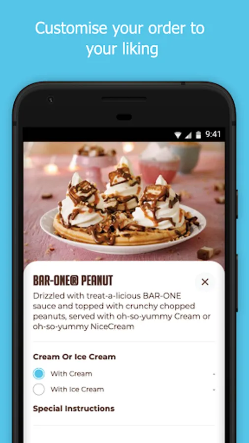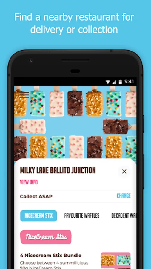 You can now order and pay for your favourite feelgood treat through the official Milky Lane app. Find your nearest restaurant, choose from our range of waffles, ice creams and other treats, customise your order and checkout.