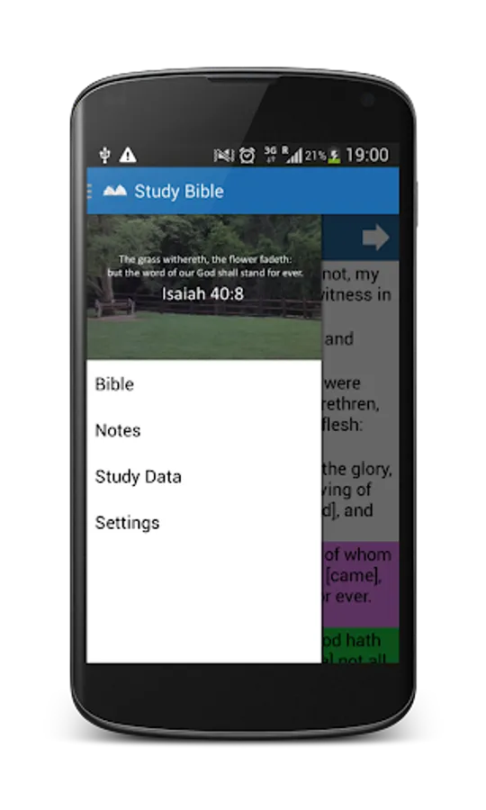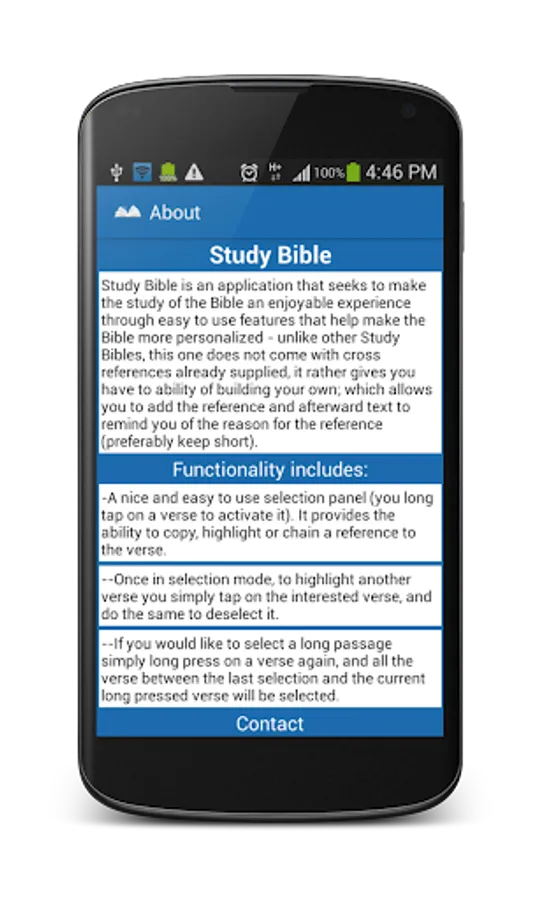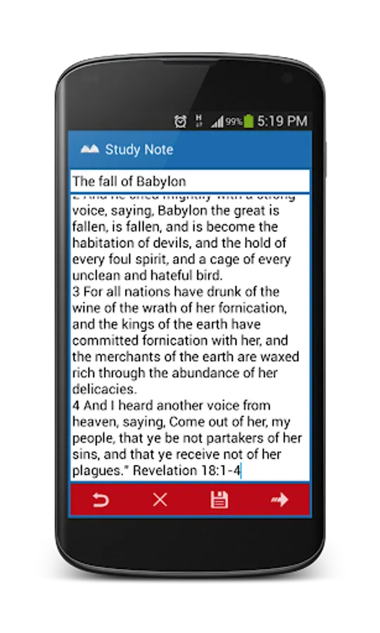 The new and improved Study Bible is a free app that seeks to make the study of the Bible a more enjoyable experience through easy to use controls and features that help make the Bible more personalized - unlike other Study Bibles, this one does not come with cross references already supplied, it rather gives you have to ability of building your own; which allows you to add the reference and afterward text to remind you of the reason for the reference (preferably keep short)