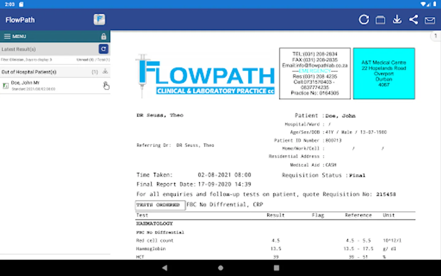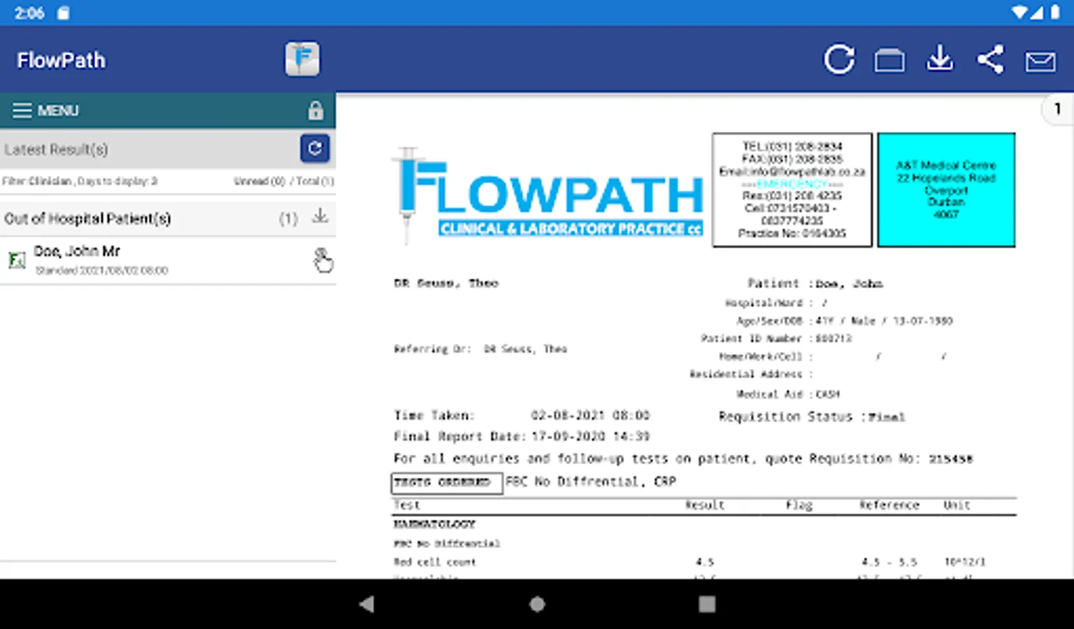 The FlowPath app enables clinicians to gain fast access to patients' latest test results.