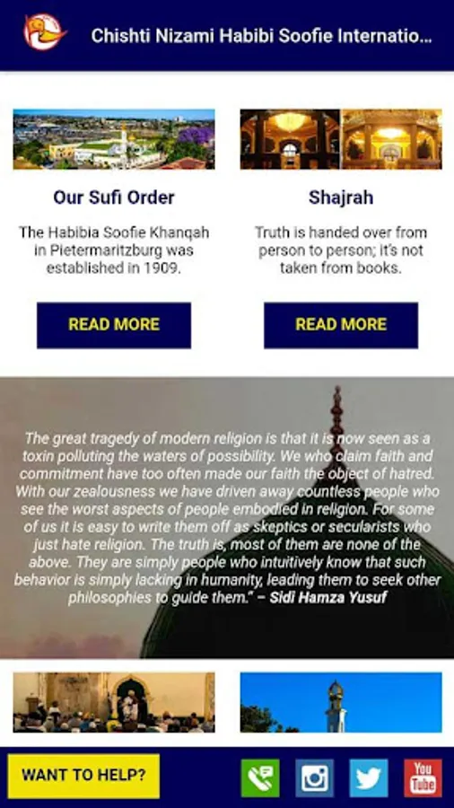 The subsequent eleven Khanqah’s established all stood in a serene, loving atmosphere, with a cool and refreshing breeze blowing, which aptly symbolized the order of Khwaja Muin ud din Chishti (Rahmatullah alai), the order of love, of the prince of love, which was to blow amidst the oppression and injustice. The Khanqah’s comprised of a Masjid, Madrassah, cemetery, orphanage, rehabilitation center, medical center, houses, courtyard, garden, fountains, wells and open kitchen. In each center, the yellow and red flag of the Chishti Nizami Habibi order was hoisted. The sandy yellow color on the flag symbolized humility whilst the red color symbolized ishqe haqiqi (true love), the two qualities which the Habibia order strives to imbibe into it’s disciples. The flag also indicated that a Khalifa of the order was present at the Khanqah and could be consulted.