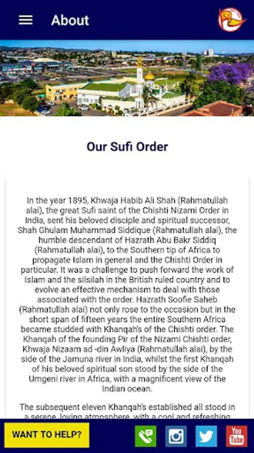 In the year 1895, Khwaja Habib Ali Shah (Rahmatullah alai), the great Sufi saint of the Chishti Nizami Order in India, sent his beloved disciple and spiritual successor, Shah Ghulam Muhammad Siddique (Rahmatullah alai), the humble descendant of Hazrath Abu Bakr Siddiq (Rahmatullah alai), to the Southern tip of Africa to propagate Islam in general and the Chishti Order in particular.