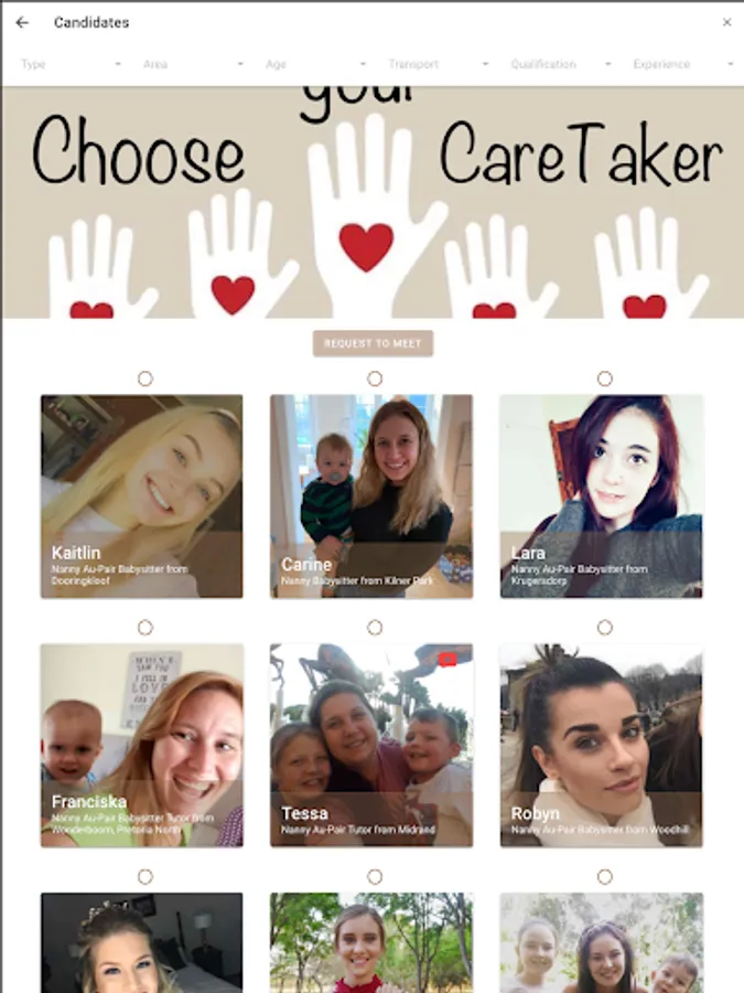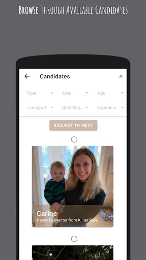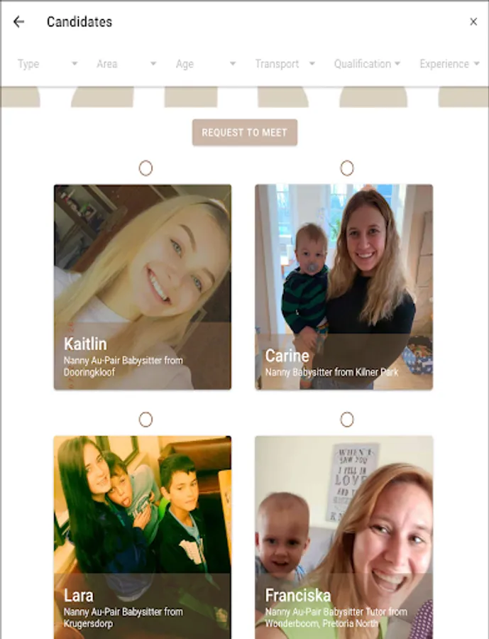 Parents can scroll, filter, and select candidates that they want to meet, and request to meet with them once you are ready. There is no time limit and no sign-up costs associated with the use of our App.