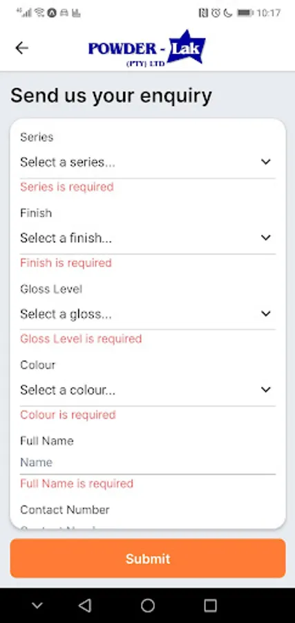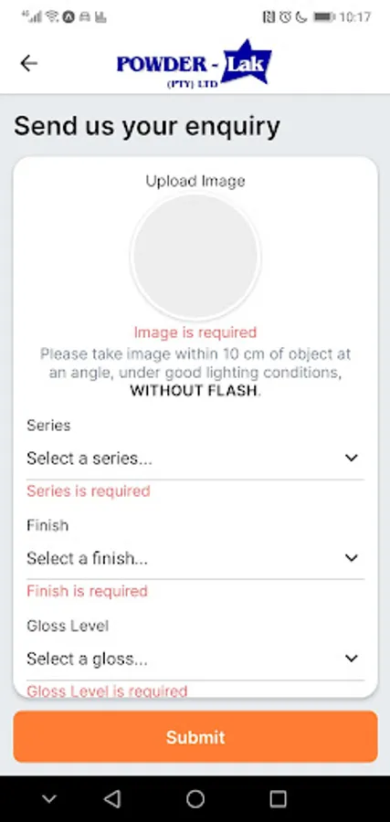 All customers to request custom powder coating products with relating gloss, finish and colour. Will also allow customers to send an image of the requested colour.