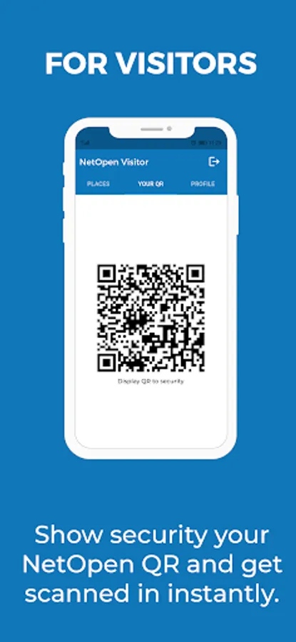 The Visitor and Security NetOpen application allows the visitor to enter the entrances using a QR code that is scanned by security. Get your own QR to enter buildings that use NetOpen's smart visitor management system. Easy contactless login allows for social distancing while keeping information encrypted and private.