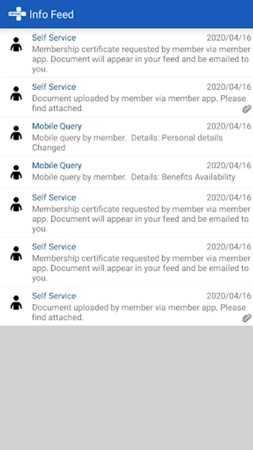 Information Feed: A list of all recent interactions between yourself and Cimas including calls logged and recent use of benefits.