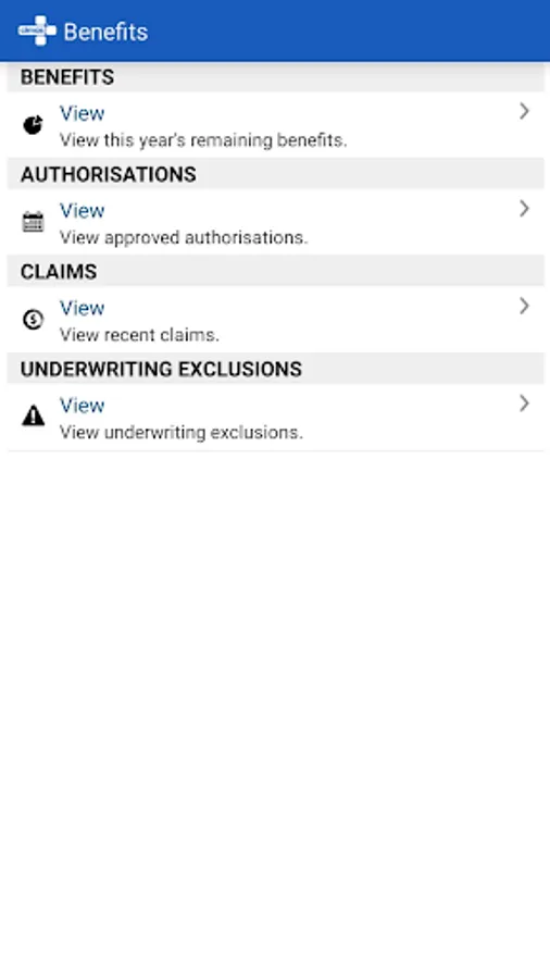Benefits: Easy to read information of benefits and important information regarding access to the benefits.