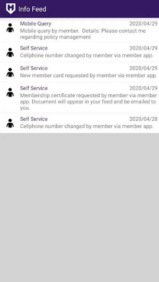 Information Feed: A list of all recent interactions between yourself and Healthguard including calls logged and recent use of benefits.