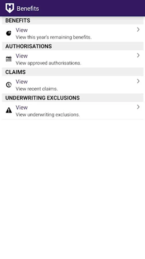Benefits: Easy to read information of benefits and important information regarding access to the benefits.