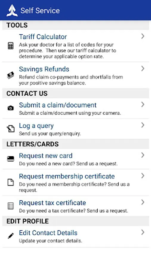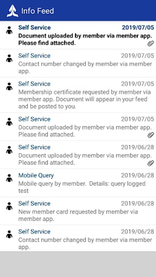 Information Feed: A list of all recent interactions between yourself or your membership and Botsogo Health Plan. Including records of interactions with contact centre agents, recent statements.