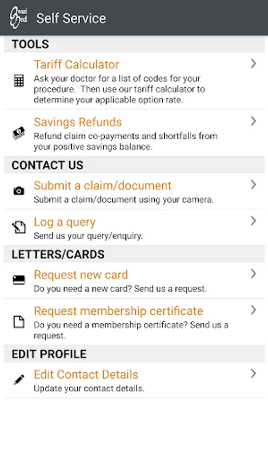 This free app – developed for SwaziMed members – brings you convenient and easy access to emergency and key contact details, information regarding your policy, statements, benefits, savings balances and more. It also provides you with a range of useful and interactive tools with even more to come.