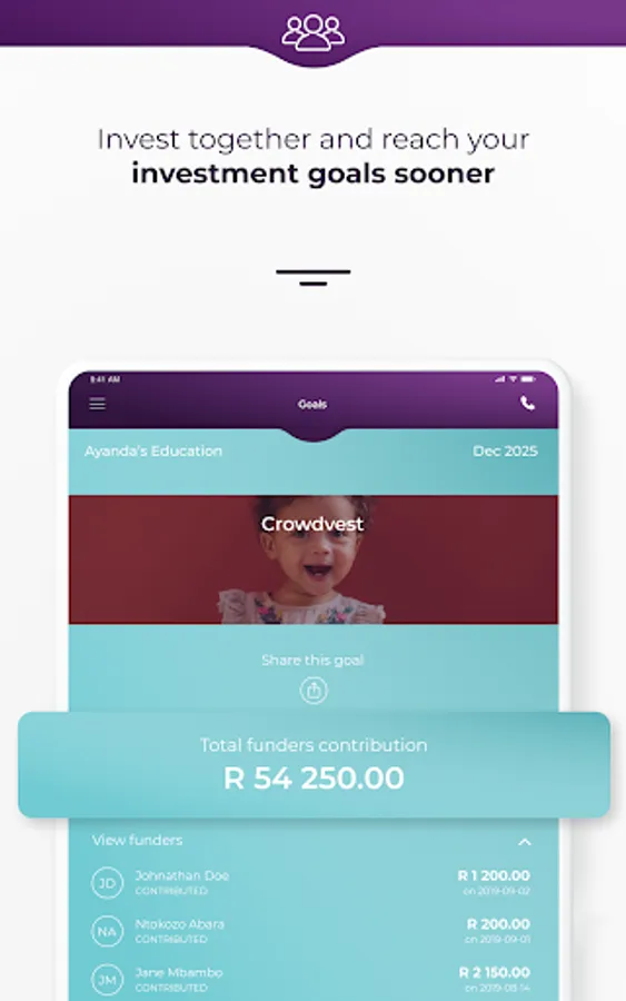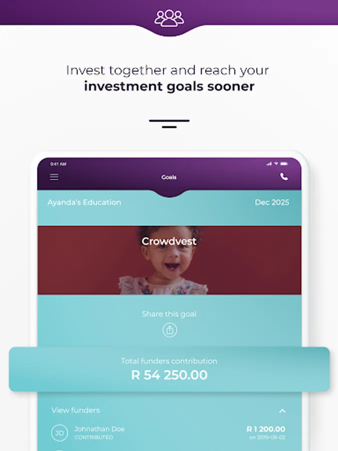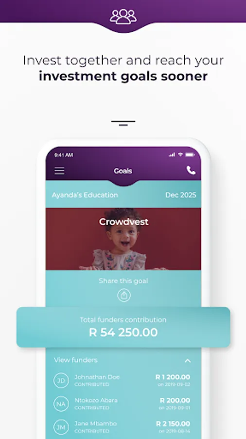 • Crowdvest – our revolutionary feature which allows you to invite friends and family to contribute to help you reach your goal.