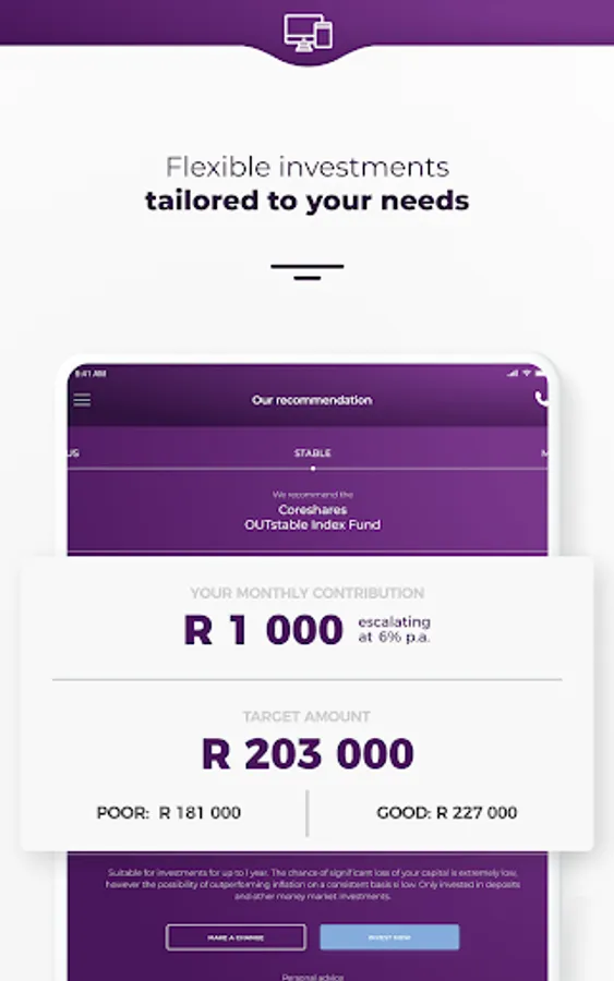 Build your own investment plan in minutes! OUTvest helps you set and reach your goals by helping you create personal investment plans. We combine state-of-the-art investment technology and human expertise to make investing simple. From planning to payment, we are with you throughout your investment journey.