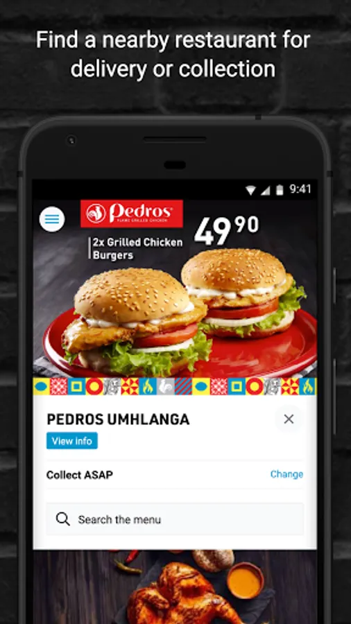 You can now order and pay for your favourite Chicken meal through the official Pedros Chicken app. Find your nearest restaurant, choose from our range of wraps, burgers, chicken meals and sides, customise your order and checkout.