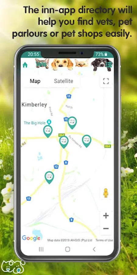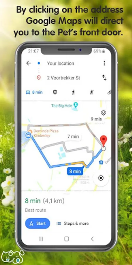 By clicking on the address the app will give you directions to the pet's front door via Google maps.