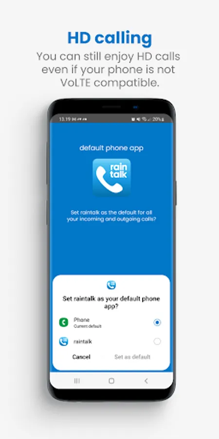 However, If your mobile device is not compatible with VoLTE, you can still access HD calling through raintalk without having to upgrade your smartphone.