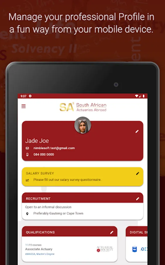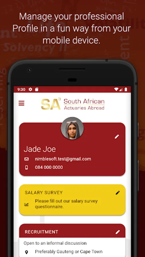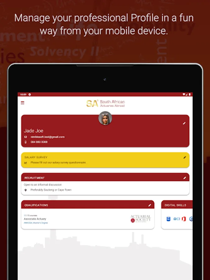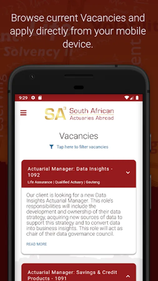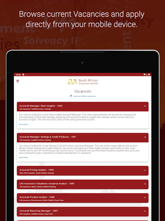 The SA3 App brings your professional profile and news about exciting new career opportunities securely onto your tablet or smartphone. You can now update your professional profile, view current vacancies, receive notifications, and participate in our community involvement programs – all in one place.