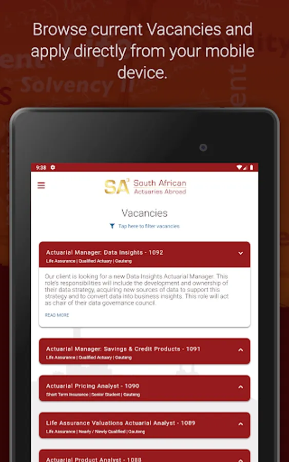 Easily adjust your Vacancies Filter to find tailored opportunities. Tap on the vacancies that catch your eye to get more details.