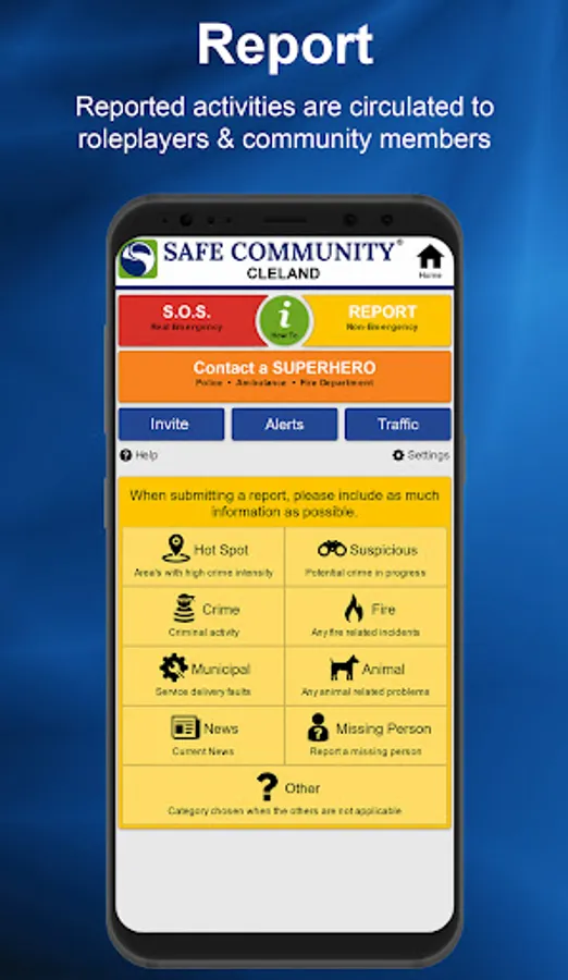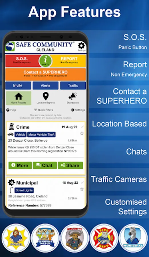 All of the above Role Players and more are now able to communicate simultaneously on the same platform with GPS location based SOS, reports and alerts features, easy to use direct drive to map and voice guided navigation, a step above your normal panic button. Beautiful user interface which allows residents and relevant responders to post and share updates of reports on alerts. One of the many favourite features are the customizable settings and tones to avoid being bombarded by unnecessary chit chat. Select your preferred categories and areas of interest that you wish to be notified of. This technology may help save lives or find a missing pet, just to name a few benefits of this App.