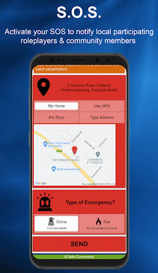 The Safe Community App brings the latest web and app technologies to your fingertips, networking you and your family, the community around you, the relevant local Community Police Forums (CPF’s), the South African Police Services (SAPS), SAPS 10111, Community Watches, Neighbourhood Watches (NHW’s), Security Companies, Alarm and Armed Response Companies, various other Role Players and Organizations 24/7. Improving a unified, multilevel approach in dealing with incidents and emergencies. This could assist you or someone else in a time of need or emergency. Providing you and your family with one of the latest Safety and Security tools which everyone should have.