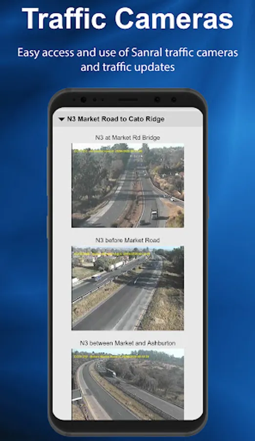 View real time images of up to date traffic cameras along major roadways in GP, KZN and WC. Helping you avoid unnecessary delays on your journeys.