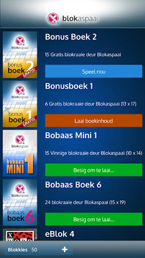 Blokaspaai offers a new dimension for an old-time favourite pastime. Specially designed and easy to fill without any frills. Blokaspaai is mainly aimed at the Afrikaans community, but we also offer some crosswords in English.