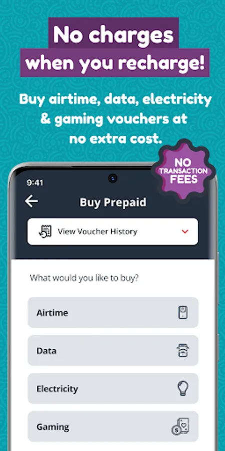 * Buy prepaid (airtime, data, electricity or gaming vouchers): FREE