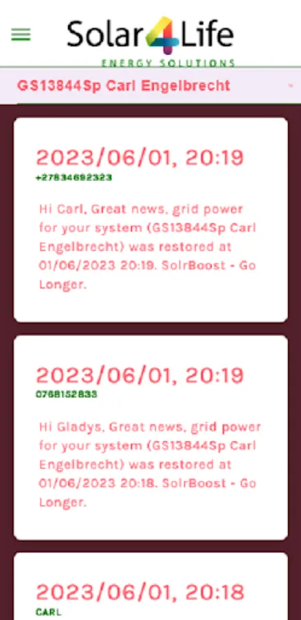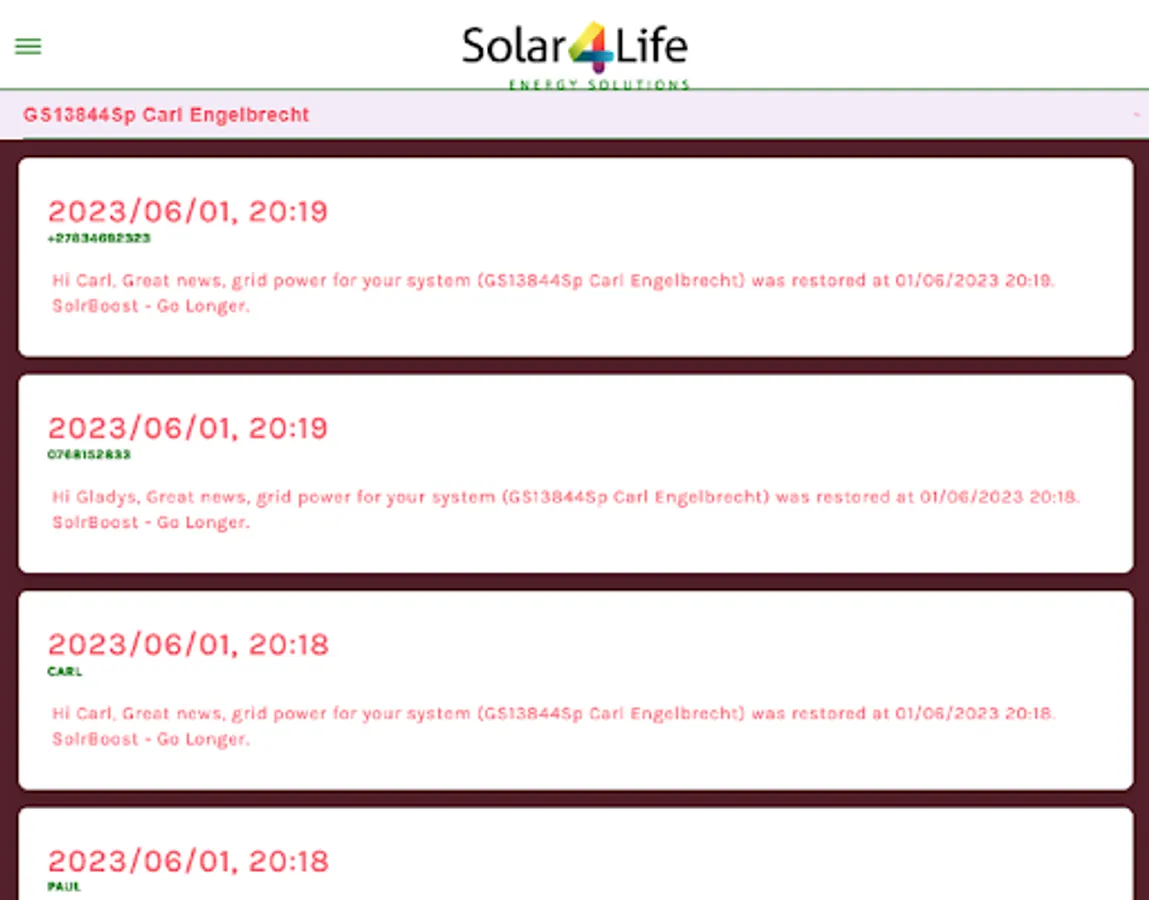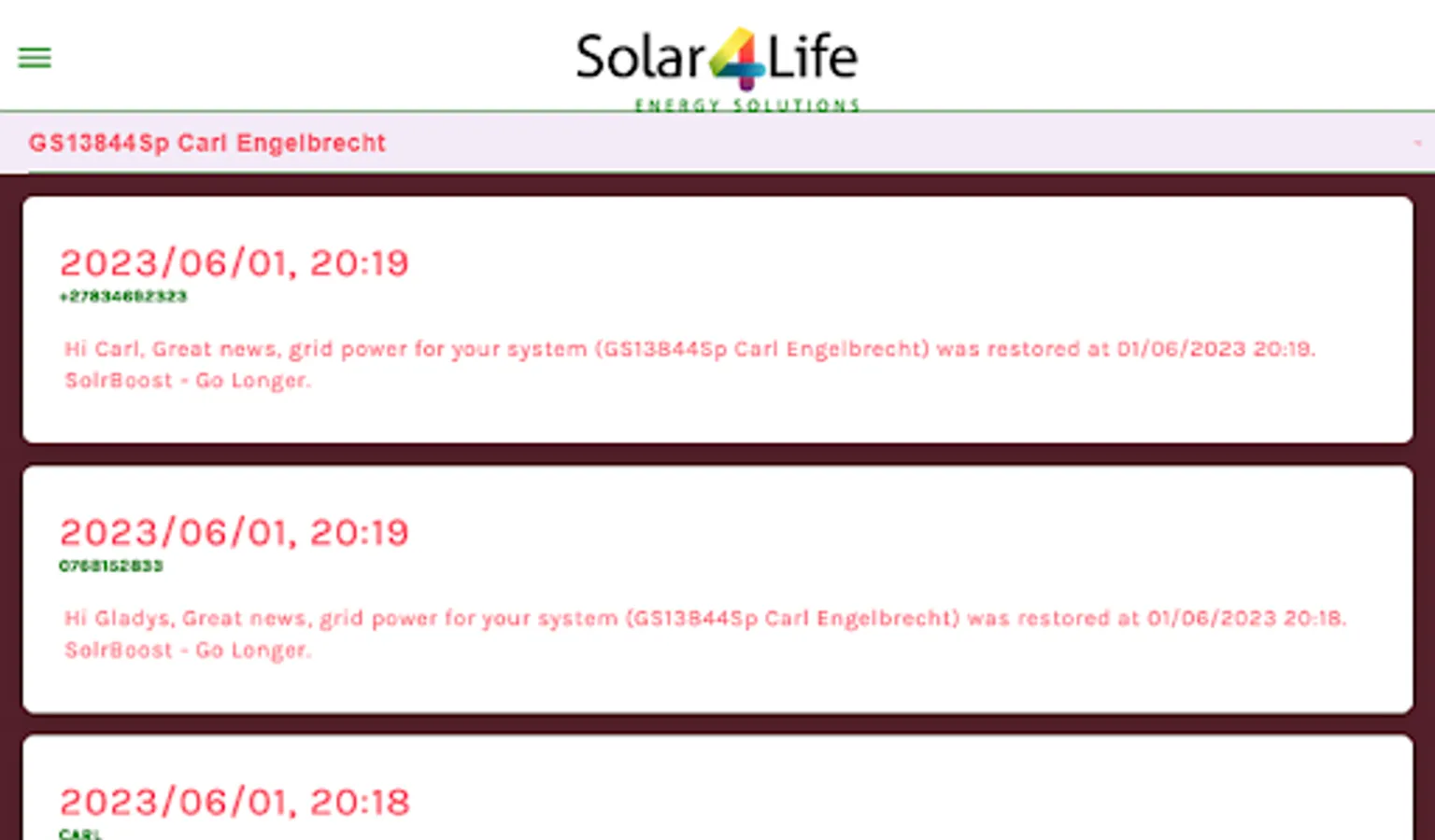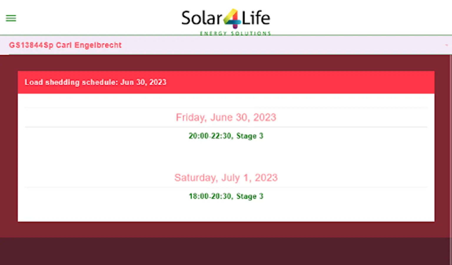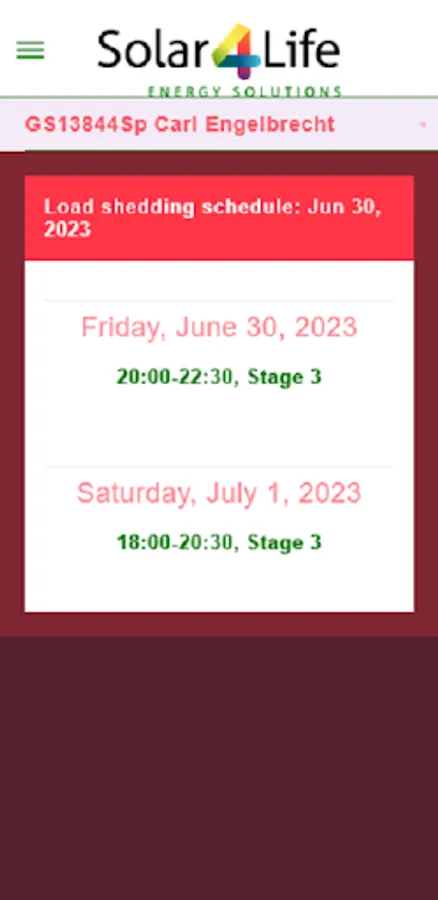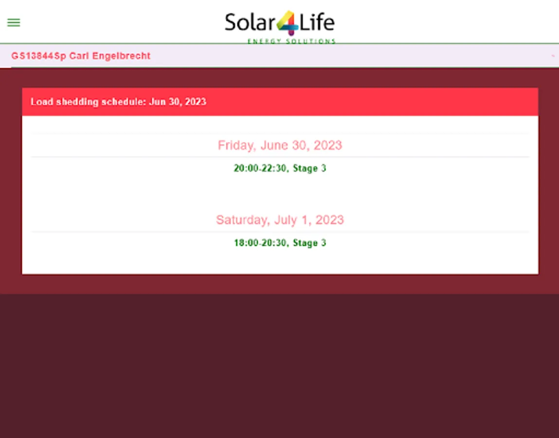 Mobile Application for Solar4Life customers. Customers can register for push notifications, see their loadshedding schedules as well as historical messages sent to them.