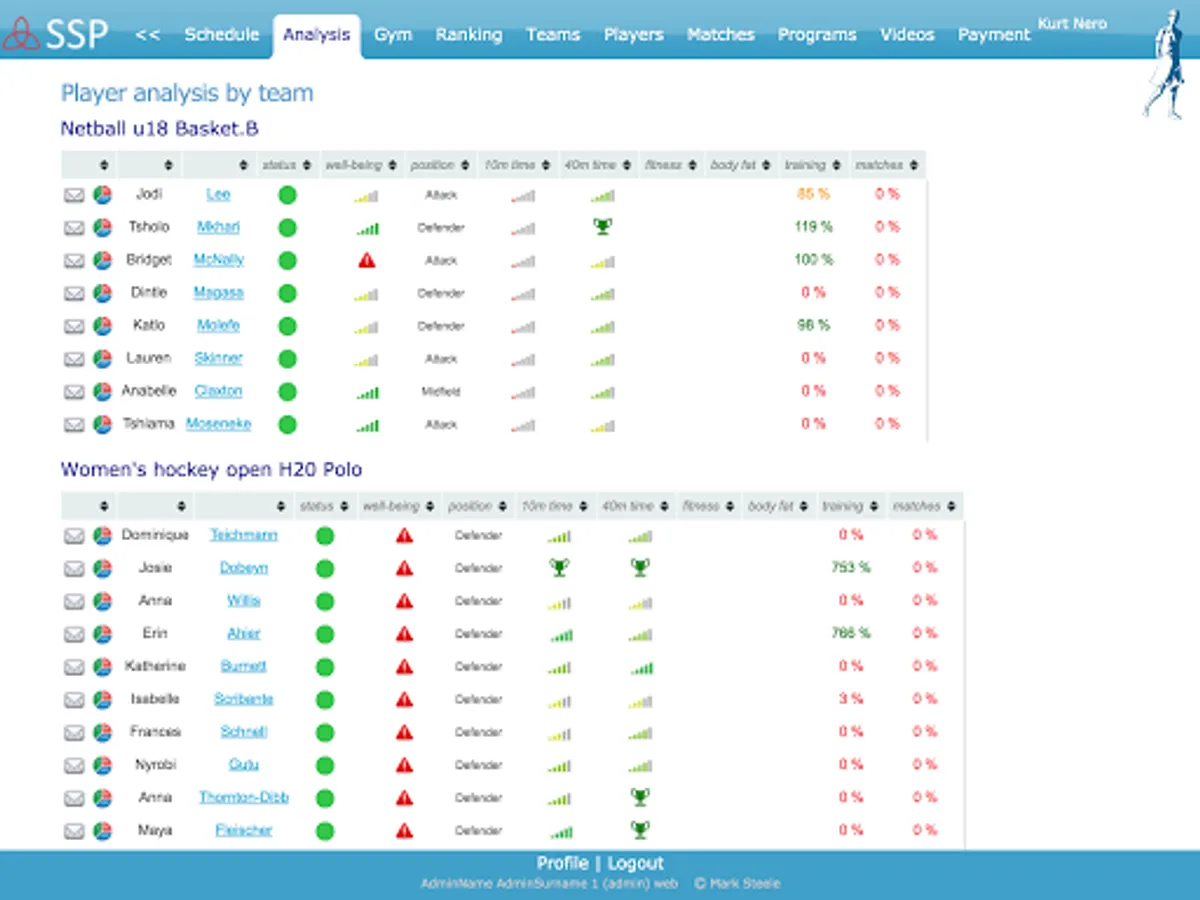 SSP helps you analyse your well-being and your performance to keep you training and playing at your best.