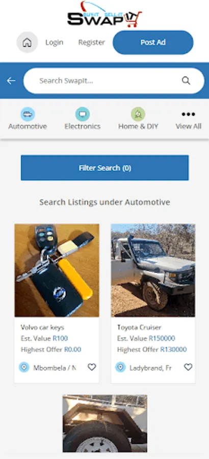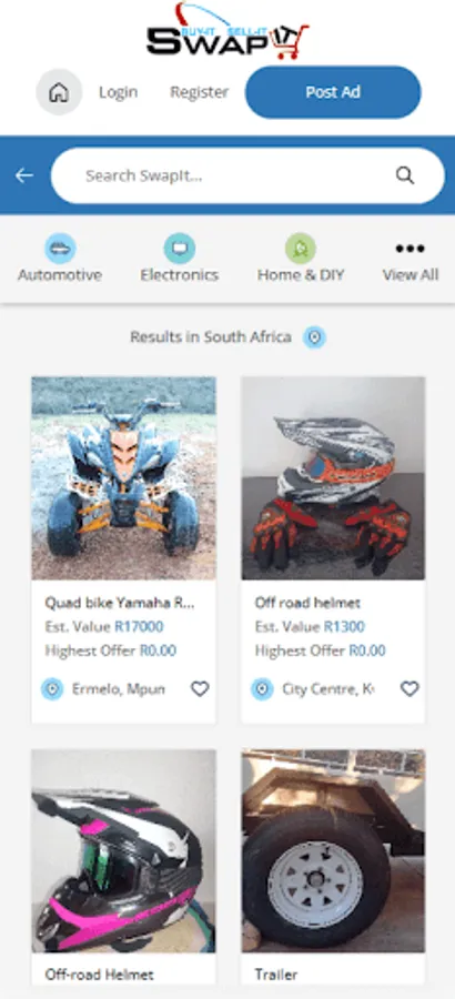 SwapIt is taking the traditional Classified Marketplace to a whole new level with its unique futures to barter goods, make offers or just buy and sell all on one safe platform from the convenience of your home. Compatible not only on desktop but also on mobile phone for your convenience and busy lifestyle. The best part is, it's absolutely free, whether you're a buyer, seller, barterer or just a visitor.