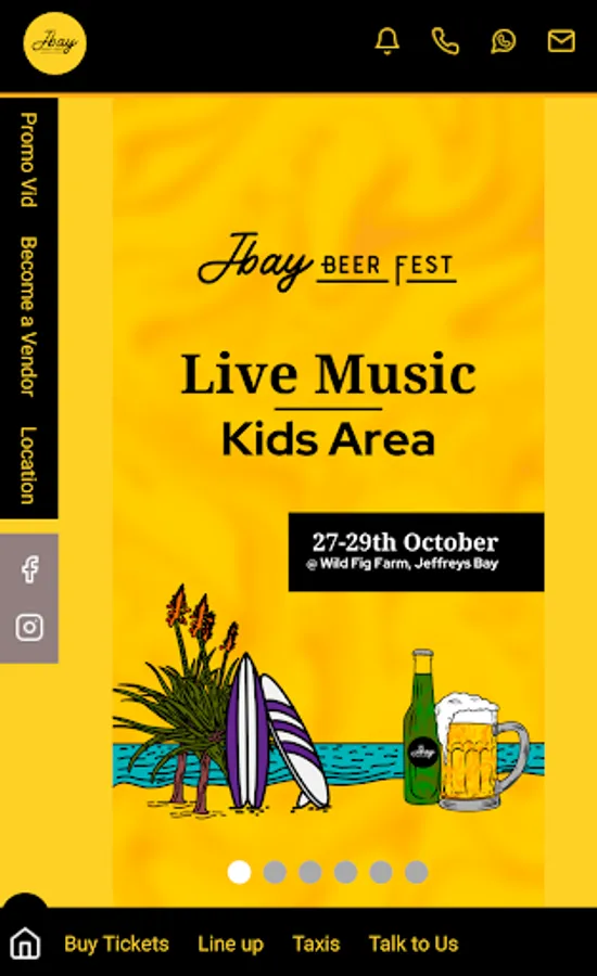 JBay Beer Fest app which provides information at fingertips. This will provide ways to contact for information about the festival, location, buying of tickets and more.