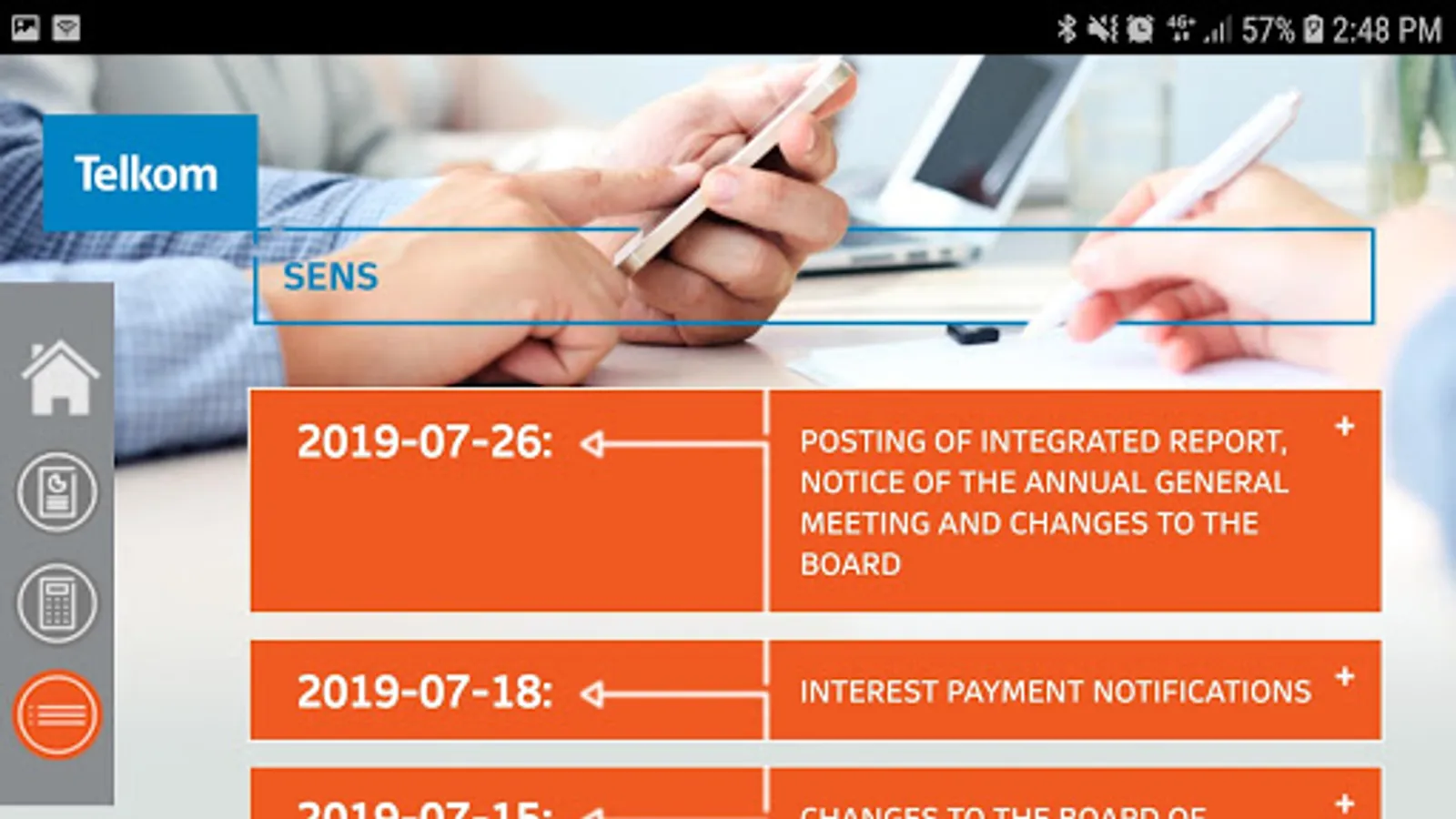 The app allows you to read the annual report, check annual and interim results as well as stay up to date with SENS announcements.