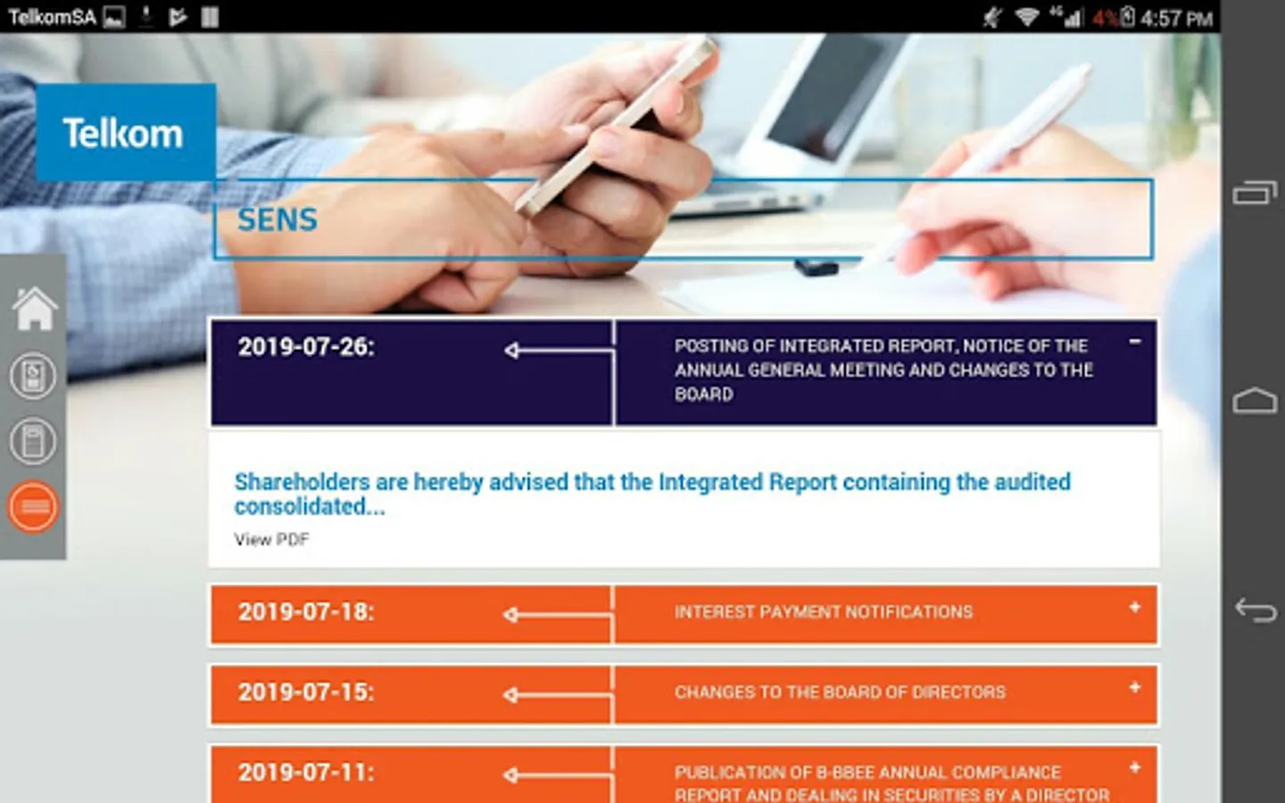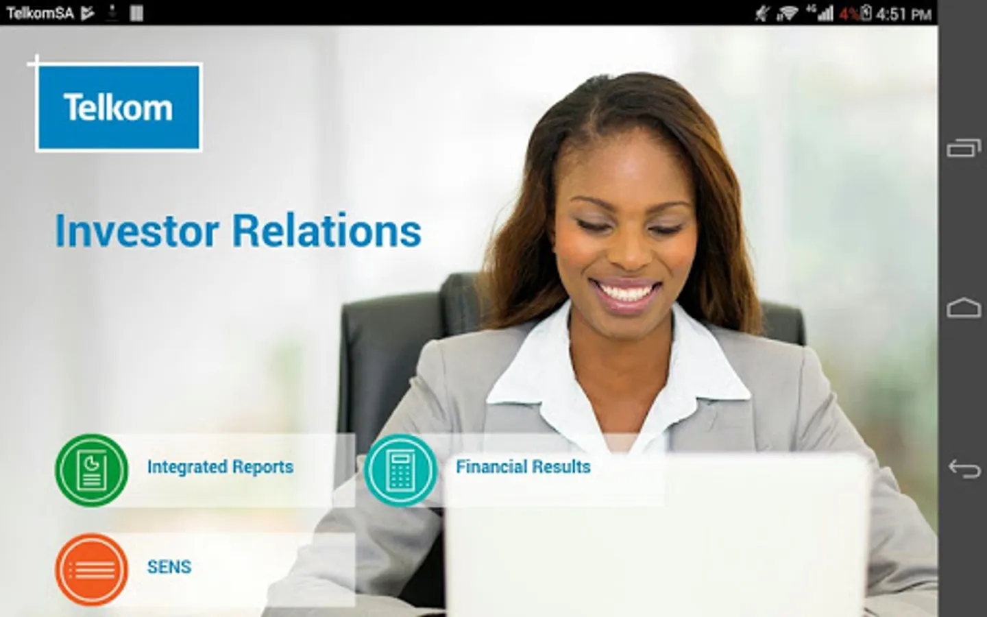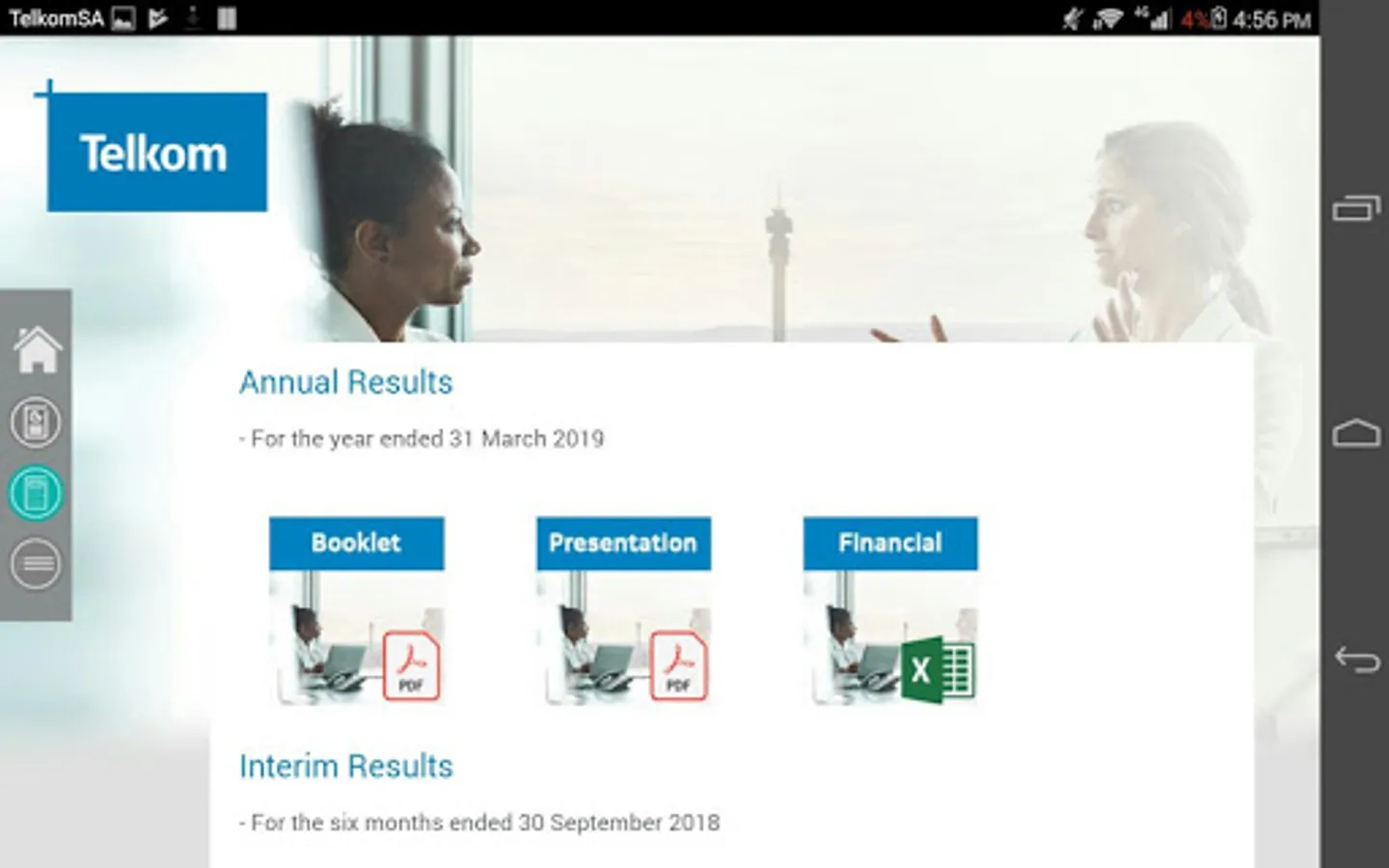 The Telkom Financial reporting app will be updated with the latest financial information at the same time as the corporate website.