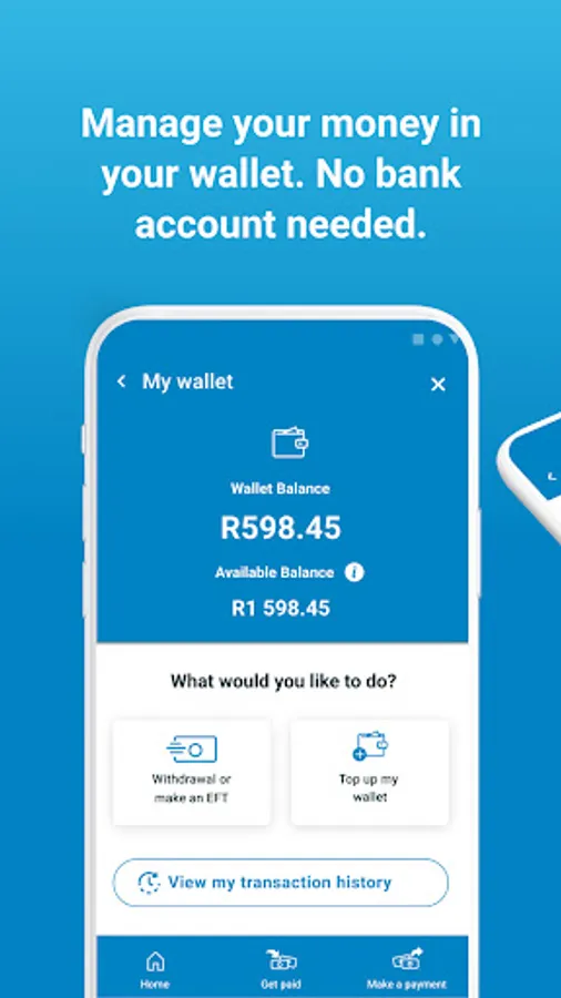 Sign up is easy. Verify your identity through a KYC (Know Your Customer) process for your safety. This process can be done on your phone, with no paperwork or branch visits required. You will be asked to upload your South African identity document, valid passport or driver's license. If you are not a South African citizen, you can upload your valid foreign passport or asylum document. Next, you will be asked to take a 'selfie' with a 'thumbs up' to compare to the image on the document you have just uploaded. Verification is instant, and if successful, you will be able to start transacting immediately.