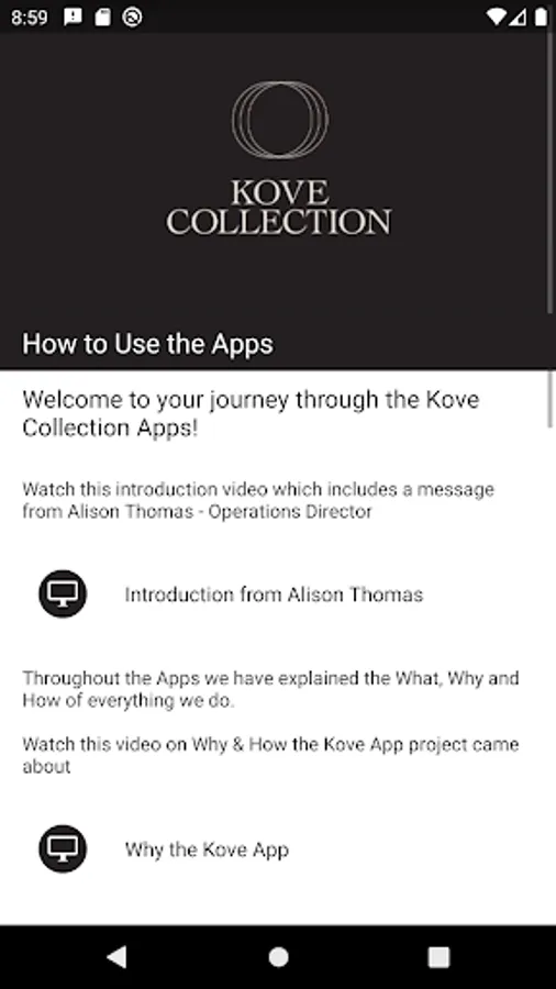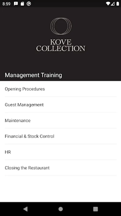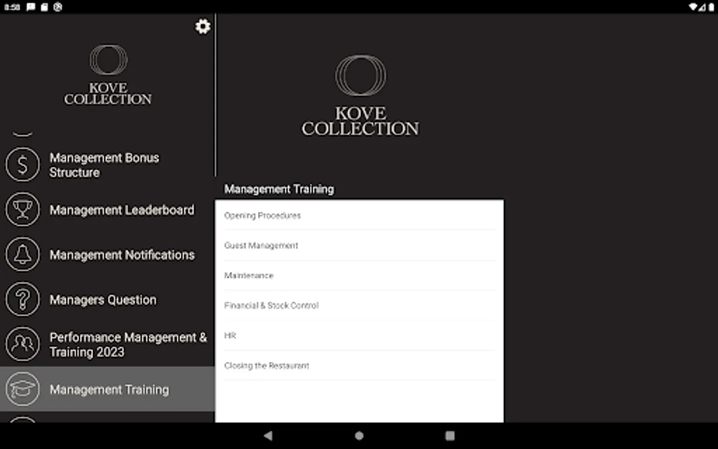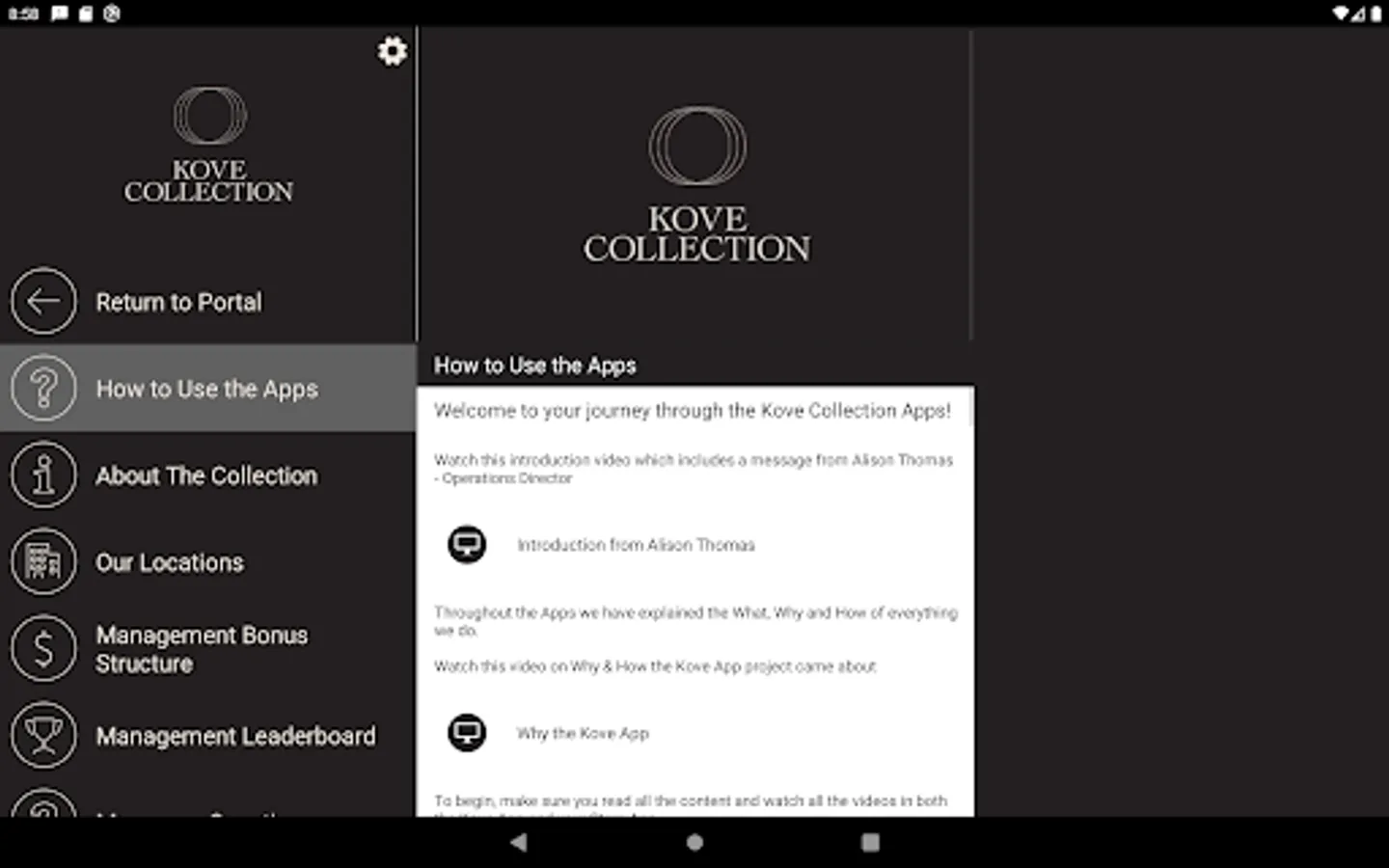 The Kove Collection Training app was created for both current and future staff members in order to equip them with all of the necessary tools required to work to The Kove Collection standard of perfection and to enjoy every minute of being part of the business!