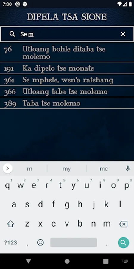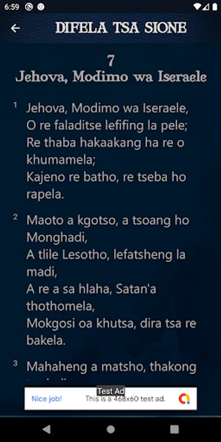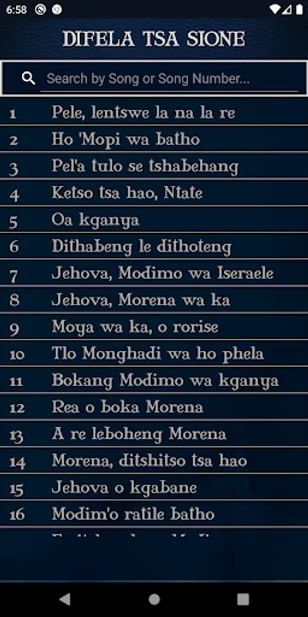 Difela Tsa Sione is a Digital Hymn Book which contains 455 hymns of Sotho Language. Lets Praise The Lord Jesus Christ with this well designed Digital Book. This is to simplify our lives and moving away from hard copies.
